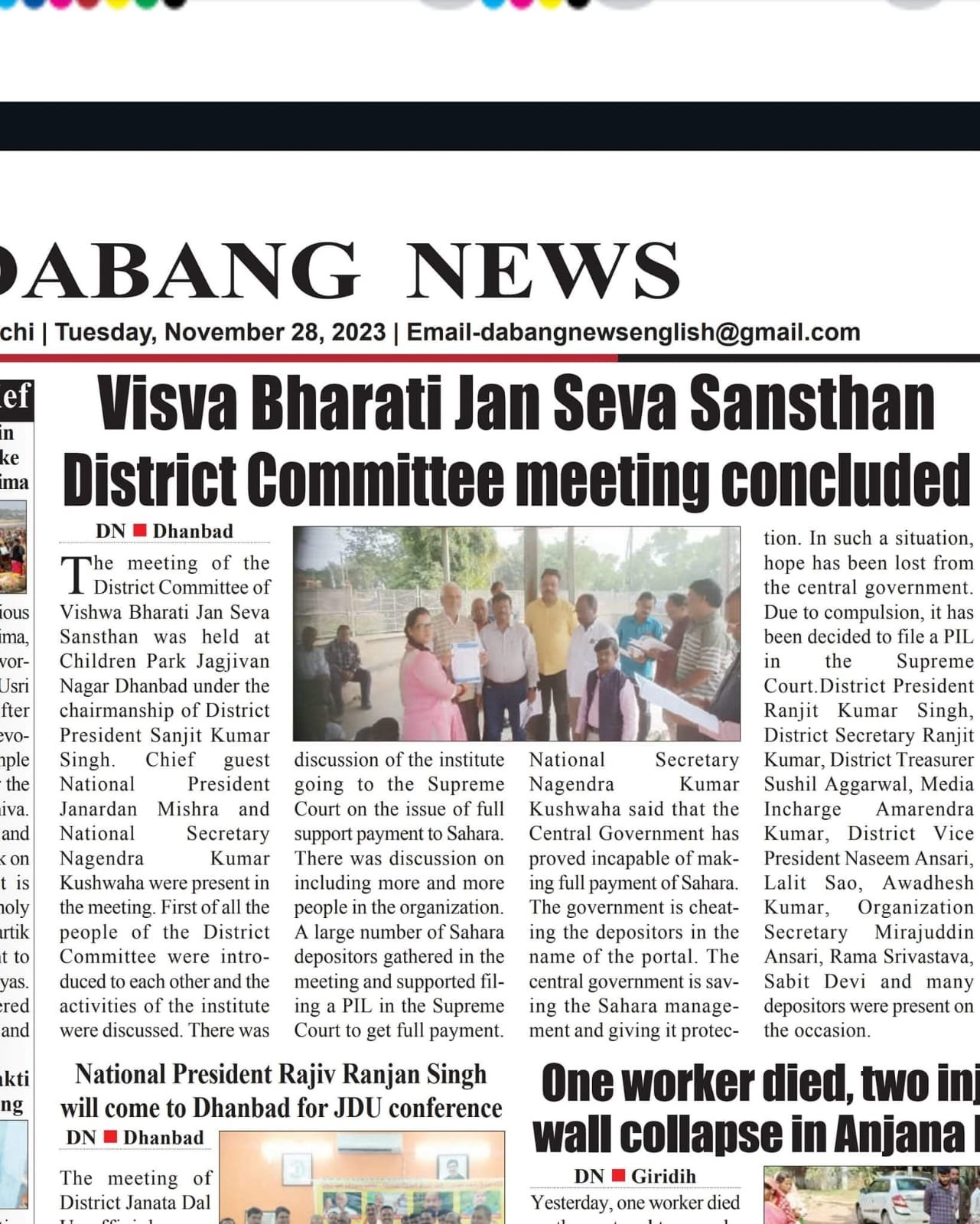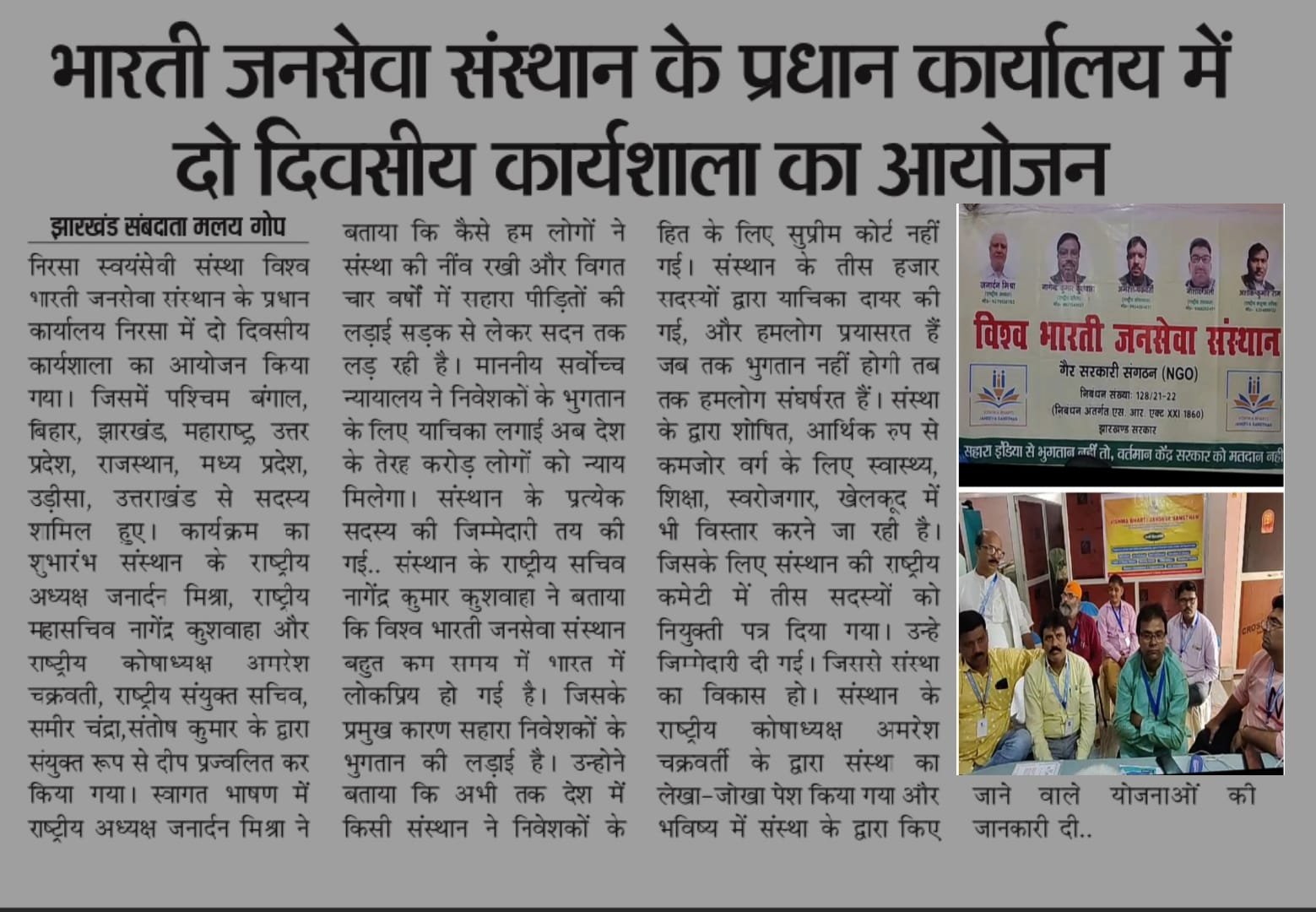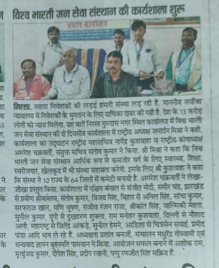 निरसा में विश्व भारती जनसेवा संस्थान की समीक्षा बैठक: सहारा जमाकर्ताओं के लिए सुप्रीम कोर्ट में याचिका, आर्थिक मुआवजा और गिरफ्तारी की तैयारी
