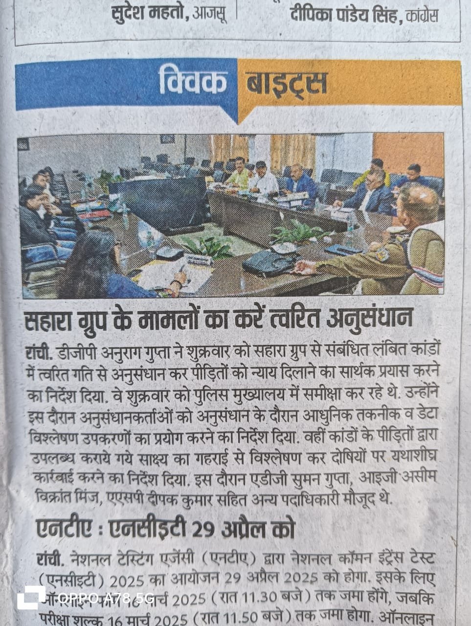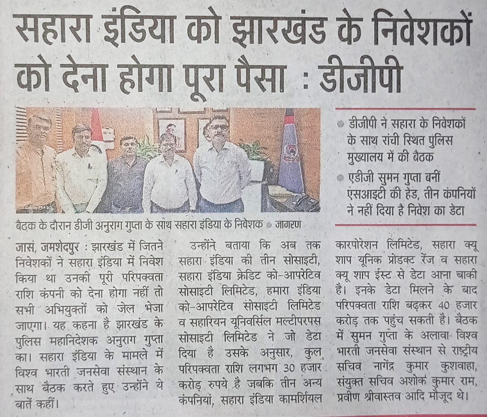 सहारा के मुद्दे पर झारखंड के पुलिस महानिदेशक से राष्ट्रीय अध्यक्ष जी के साथ मुलाकात किया गया
