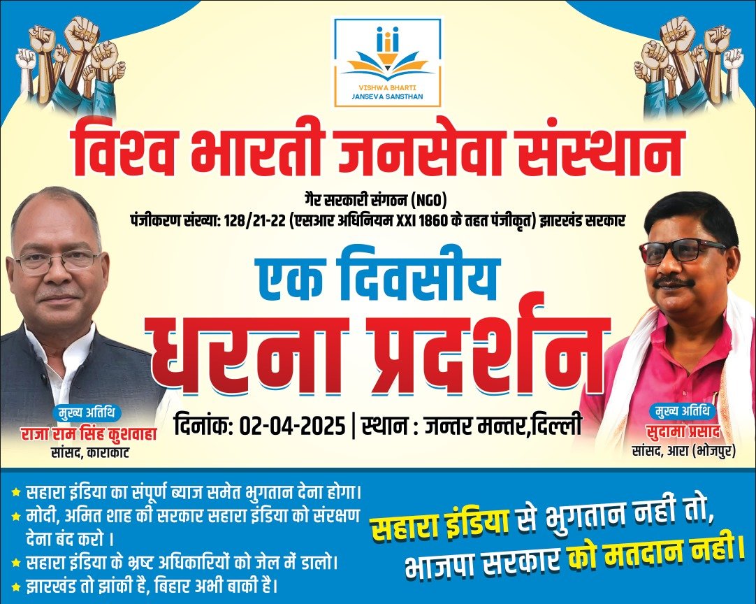 पटना में विश्व भारती जनसेवा संस्थान द्वारा सहारा जमाकर्ताओं के लिए महापंचायत की घोषणा