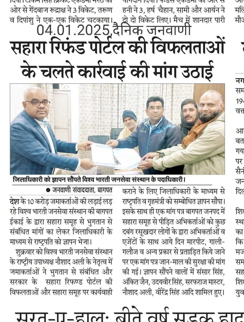 toserp सहारा निवेशकों के लिए आशा की किरण बनकर कार्यरत विश्व भारती जनसेवा संस्थान कैसे देखिए यह खबर TopFans Nirsa Exclusive