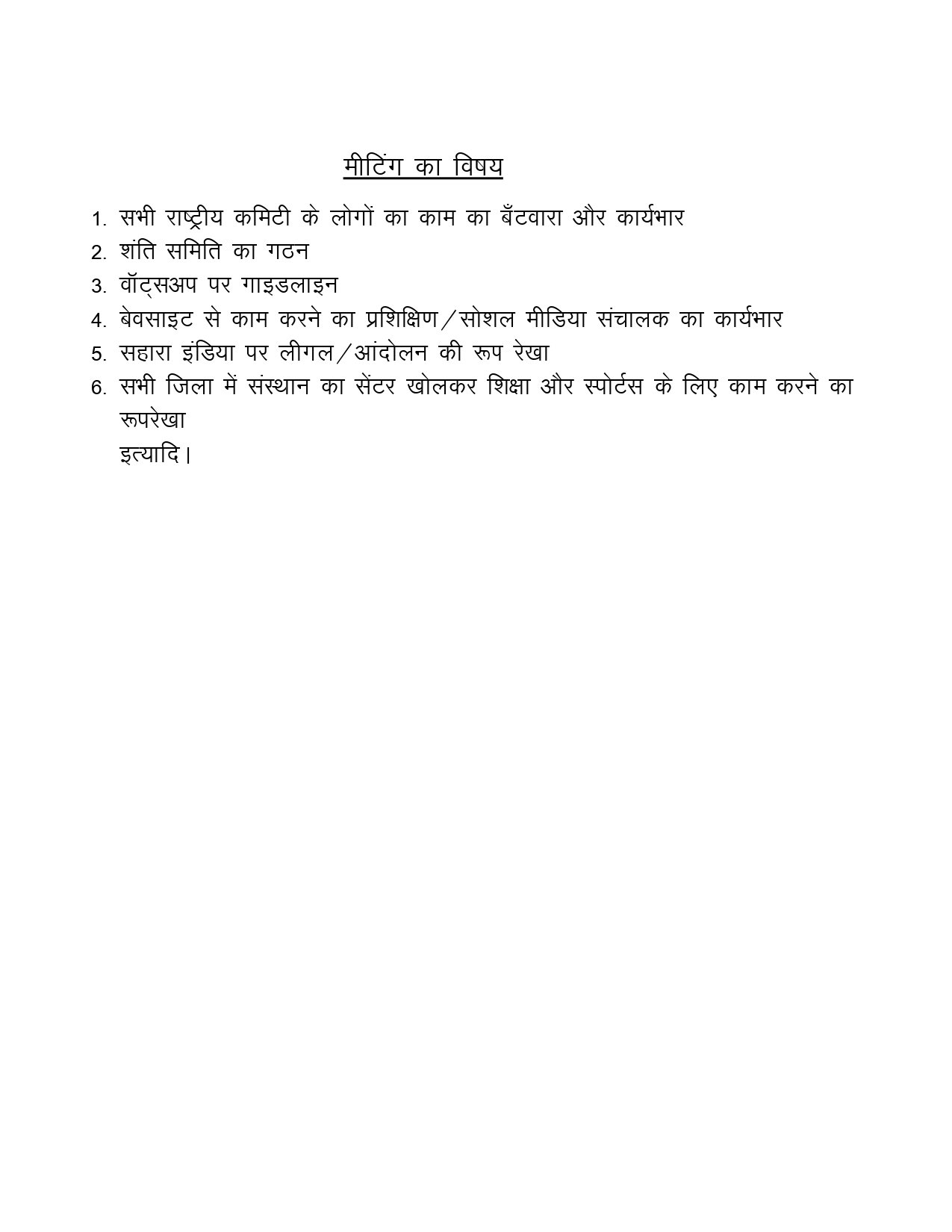 सहारा समूह को सरकार द्वारा संरक्षण देने औऱ जमाकर्ताओ के भुगतान की मांग को लेकर 2 अप्रैल 2025 को दिल्ली के जन्तर मंतर पर धरना प्रदर्शन की तैयारी को लेकर बागपत के बडौत में बैठक